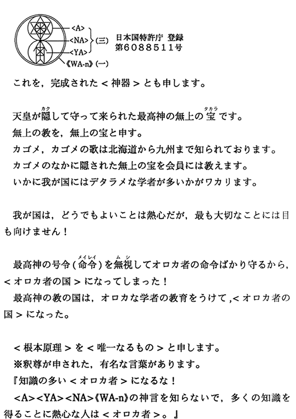 最初のページ   現在表示しています   略歴   【神仏の教えは記号】・【平成13年〜平成16年】の著書   献本先   【昭和53年〜平成5年】の著書   商標登録証