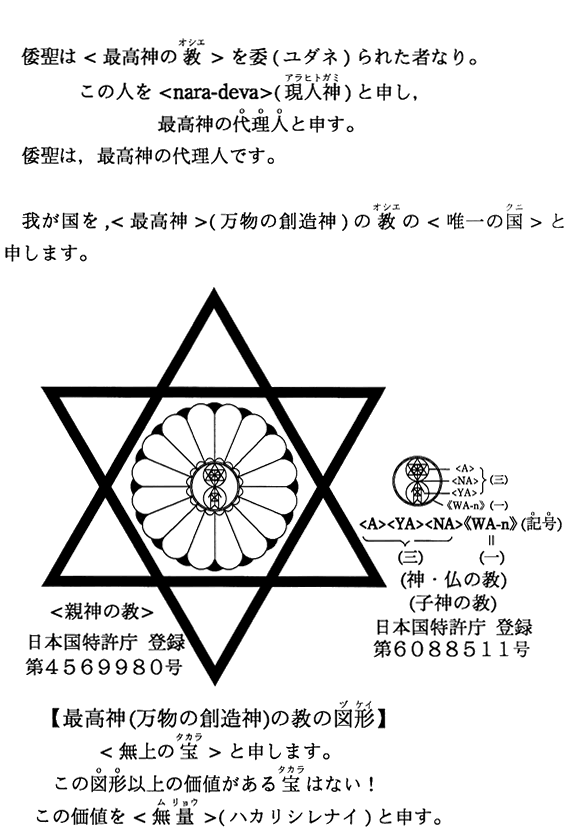 最初のページ   現在表示しています   略歴   【神仏の教えは記号】・【平成13年〜平成16年】の著書   献本先   【昭和53年〜平成5年】の著書   商標登録証