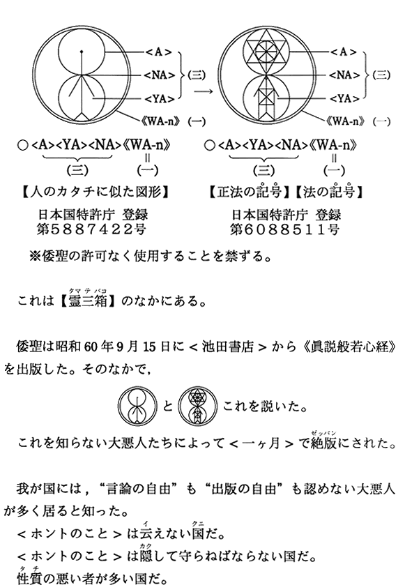最初のページ   現在表示しています   略歴   【神仏の教えは記号】・【平成13年〜平成16年】の著書   献本先   【昭和53年〜平成5年】の著書   商標登録証