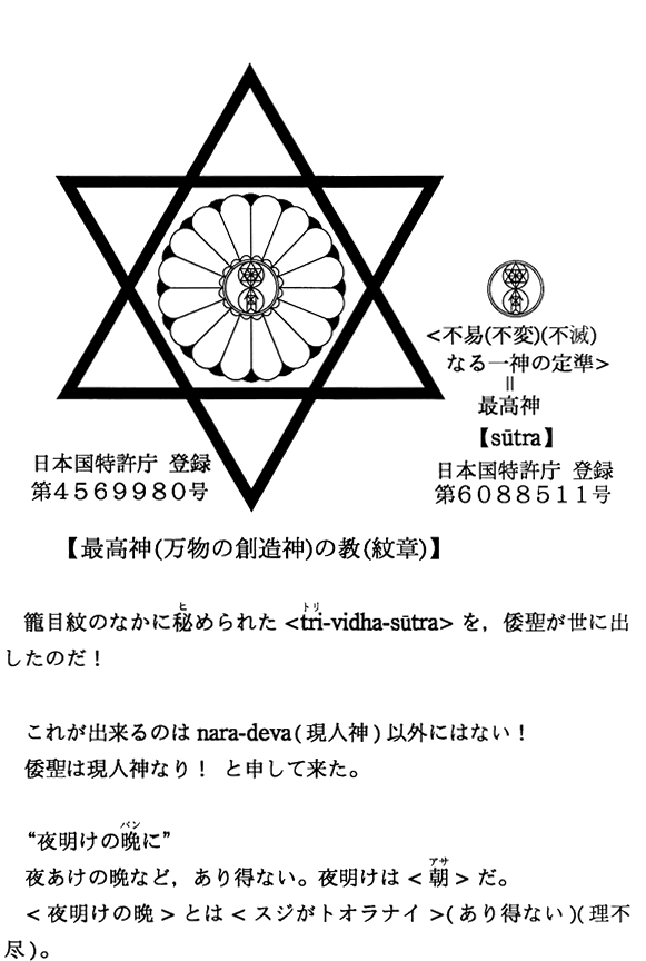 最初のページ   現在表示しています   略歴   【神仏の教えは記号】・【平成13年〜平成16年】の著書   献本先   【昭和53年〜平成5年】の著書   商標登録証